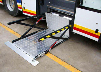 輪椅登車平臺的伸縮和外擋板的操作為電驅動。上下升降為液壓驅動。所有功能均由手持單元控制或可選遙控操作。輪椅升降機可安裝在各種輕型客車、城市客車和旅游客車的側門下。可根據車輛門的尺寸進行調節導板尺寸。