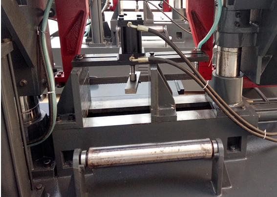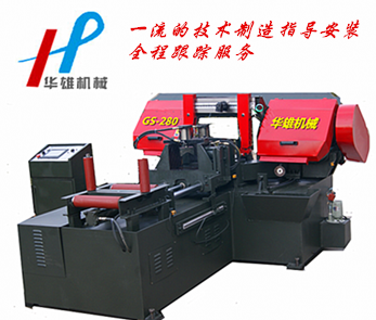 鋸床主要部件有:底坐、床身、立柱、鋸梁和傳動機構、導向裝置、工件夾緊、張緊裝置、送料架、液壓傳動系統、電氣控制系統、潤滑及冷卻系統。其操作簡單耐用,液壓系統和減速機均選用優質廠家提供,質量穩定。切削速度液壓控制,無極調速,方便快速。雙立柱結構,垂直升降,穩定性高。可根據用戶要求自行設定任意旋轉角度,可調角度在0°—45°/60°左右,操作簡單。鋸床工件加緊為液壓加緊,一鍵式加緊手柄操作方便快捷。